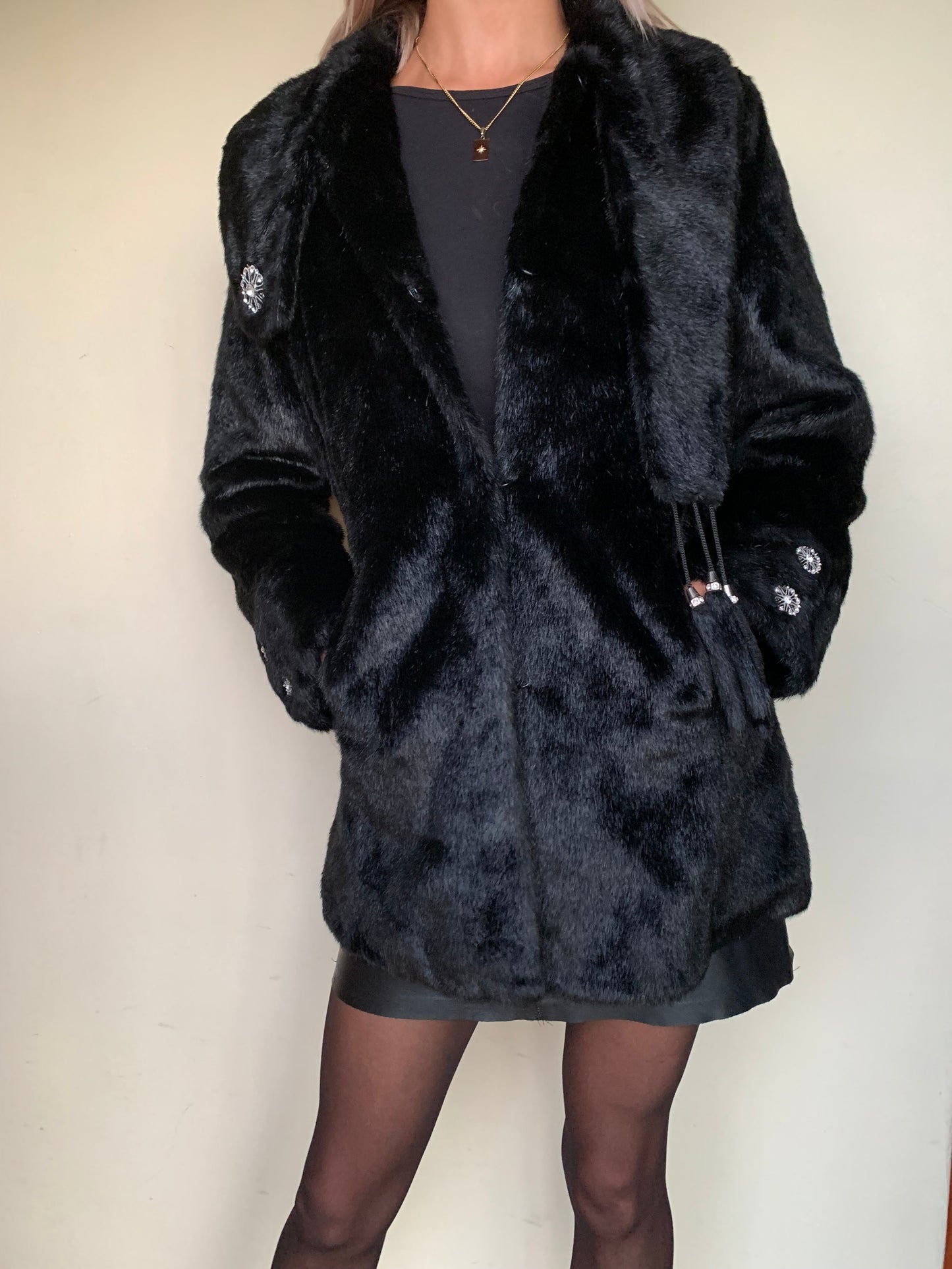 Black faux fur with tassel