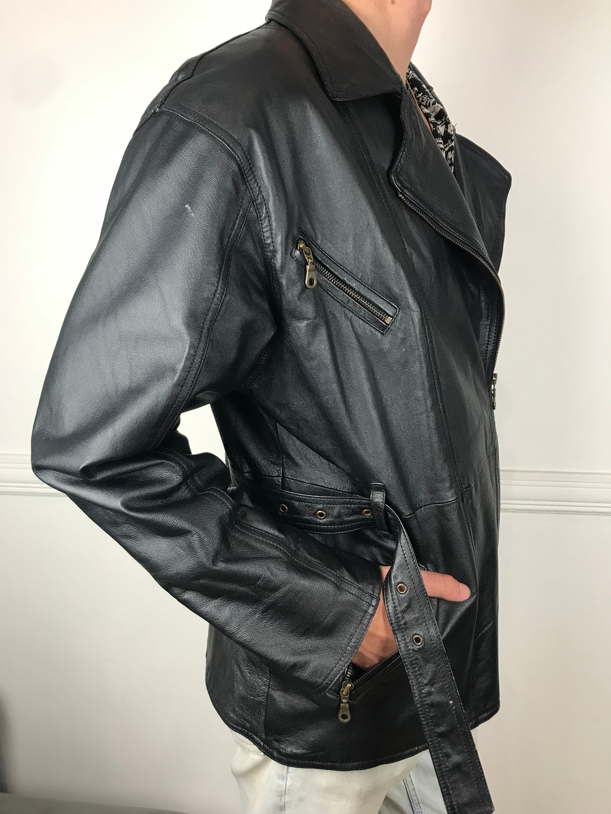 Mens Old school leather biker